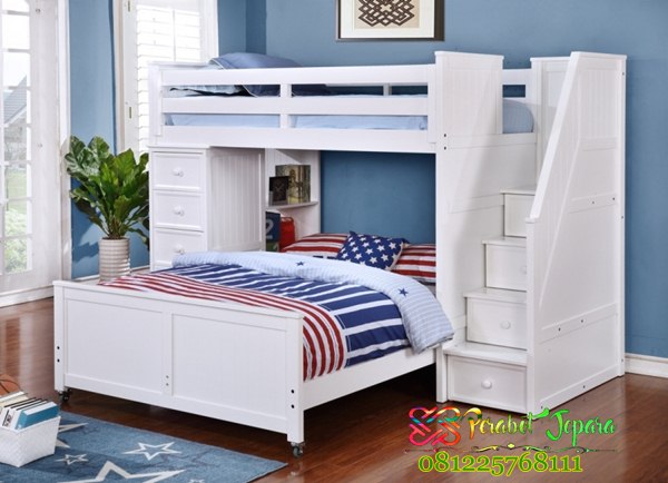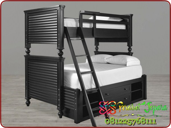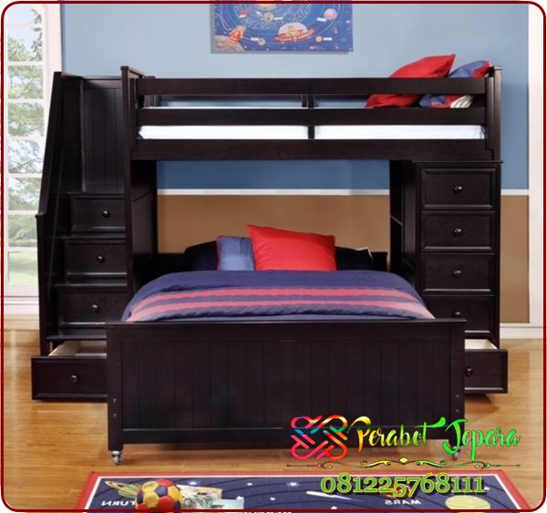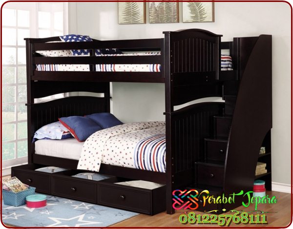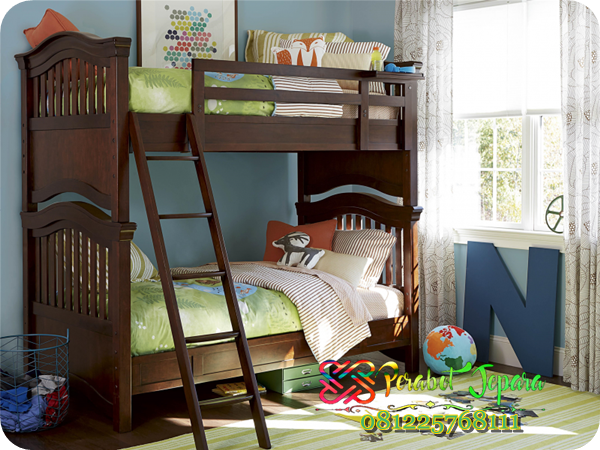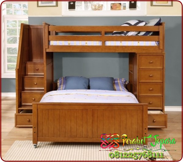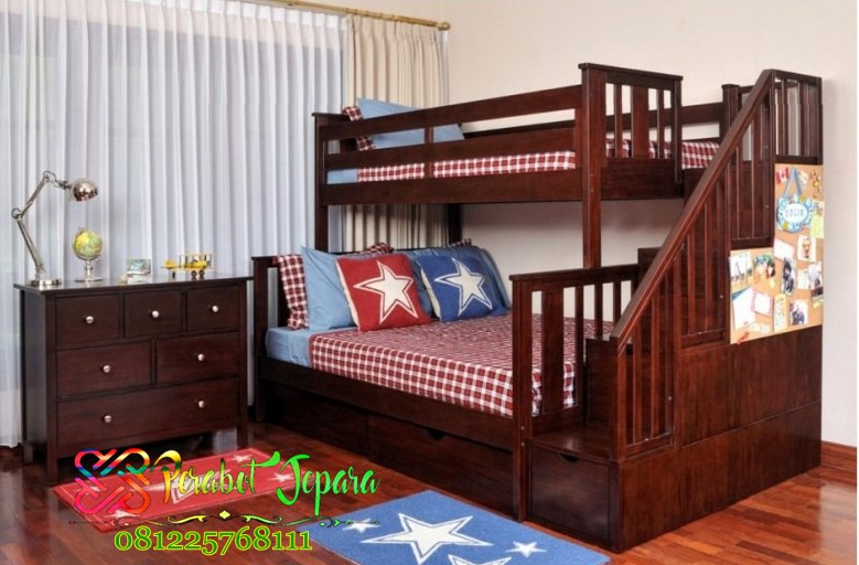 Model dan Desain Tempat Tidur Tingkat Kayu Model laci sorong mewah kokoh dan sangat cocok untuk anak anda, bagian bawah ada 3 laci sorong yang bisa dijadikan tempat untuk menaruh mainan anak atau sprai dan bantal. Tapi misalkan anda tidak suka dengan model Tempat Tidur Tingkat laci sorong atau Tempat Tidur Susun laci sorong anda bisa mengontak kami untuk meminta desain dan model yang lain, misalkan tempat tidur tingkat karakter doraemon, hello kitty, yang memakai ranjang sorong dibawah atau tempat tidur tingkat tangga laci dan ada perosotanya bahkan tempat tidur tingkat model istana kerajaan juga bisa, karena kami selalu mengutamakan keputusan pelanggan kami akan selalu berusaha membuat pelanggan pelanggan kami merasa puas dengan Tempat Tidur Tingkat Kayu buatan mebel klasik jepara jualpintu.co.id
