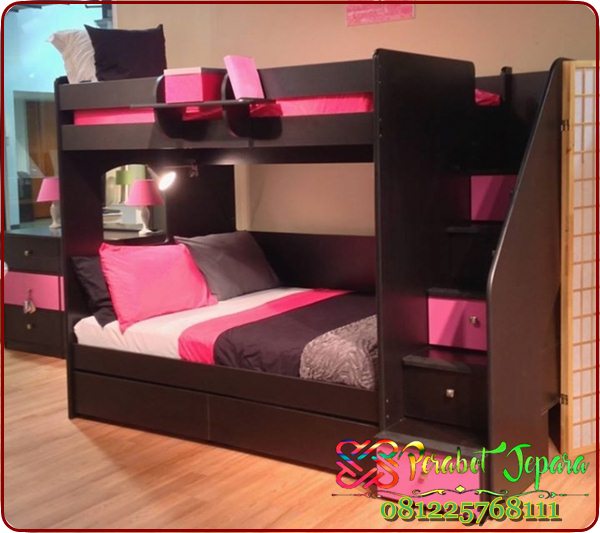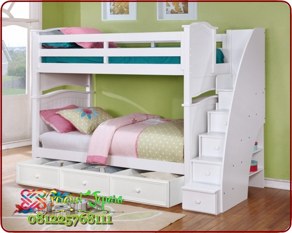 Tempat Tidur Tingkat Kayu Laci Sorong